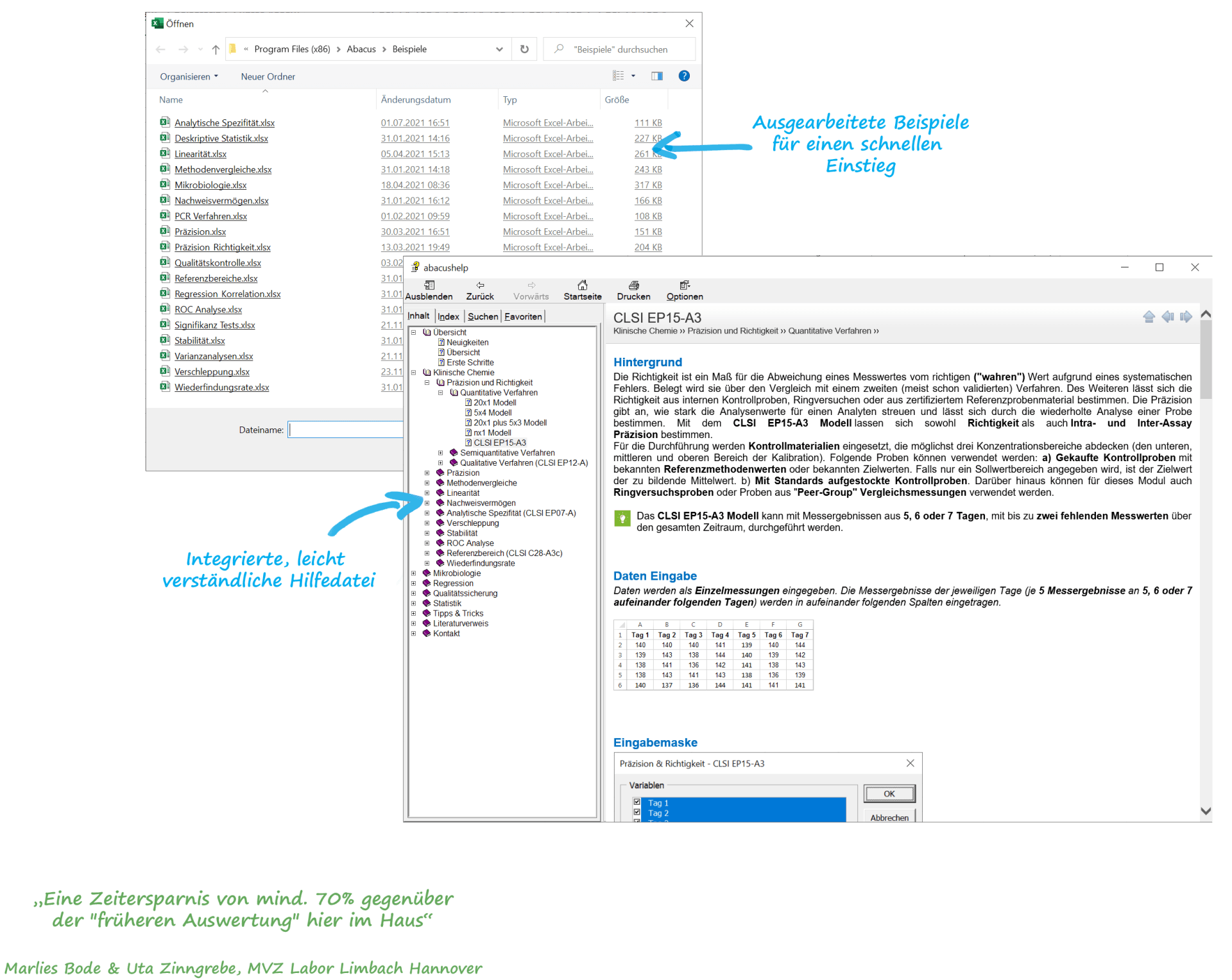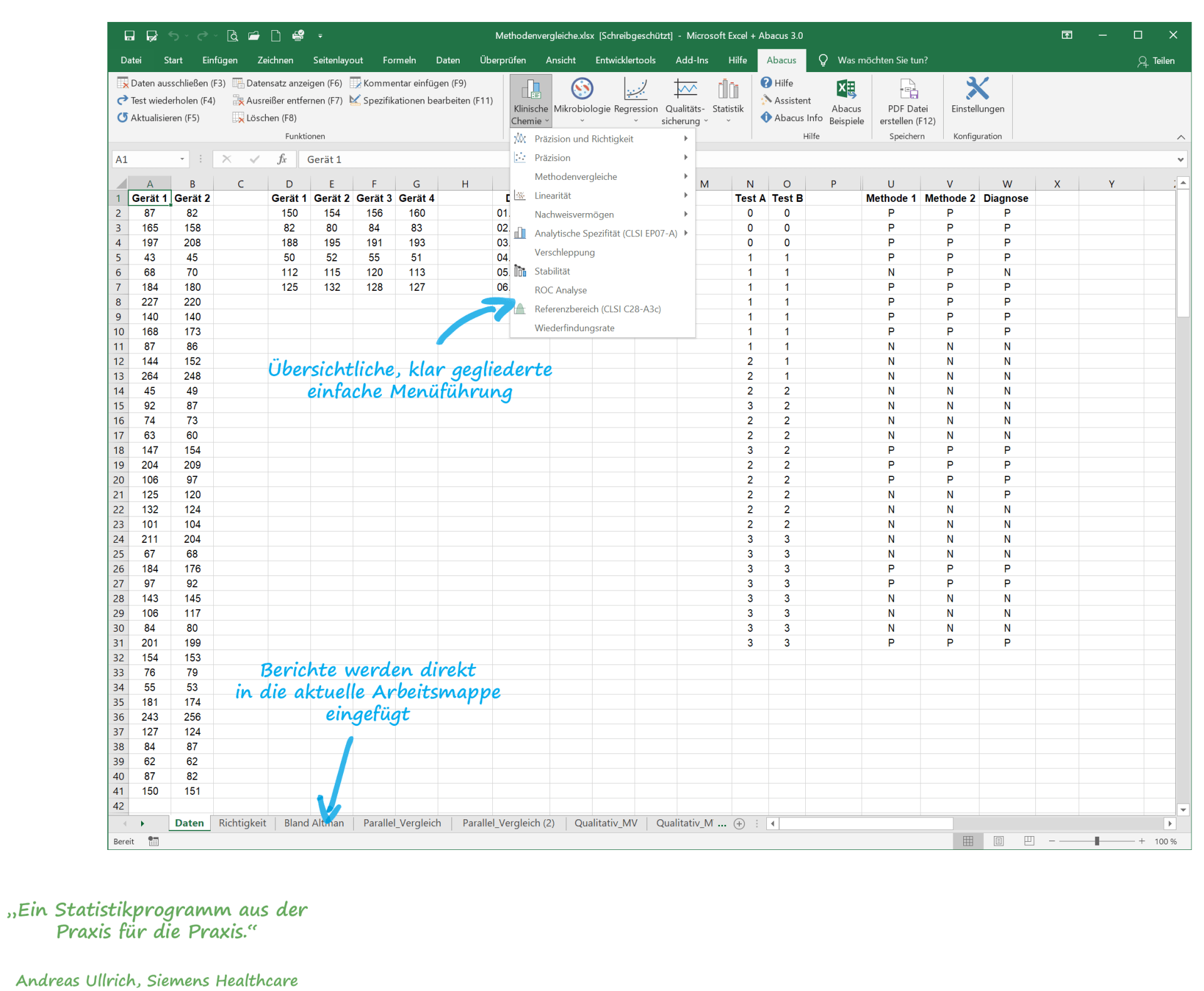Arbeiten Sie mit unserer Software für professionelle Methodenvalidierung Abacus 3.0 benutzerfreundlich in der gewohnten Excel-Umgebung.
